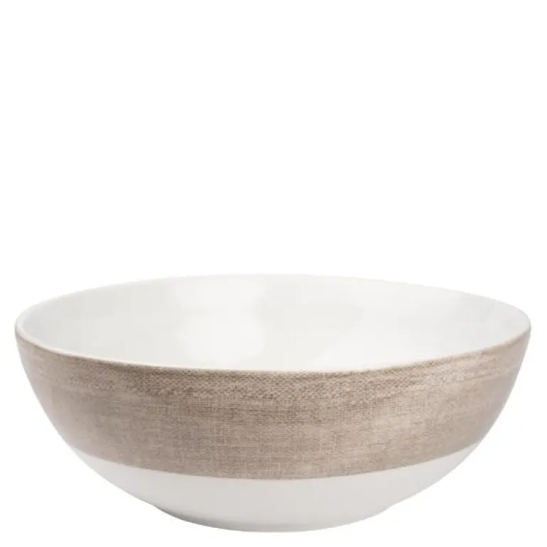 Serien LINEN består av krus 30 cl, asjett 21 cm, flat tallerken 27 cm, dyp tallerken 20 cm, müslibolle 15 cm, bolle liten 23 cm og bolle stor 31 cm.