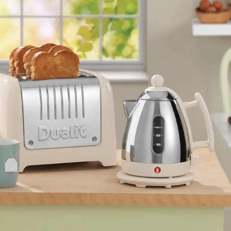 Lite vannkoker 1L cream, en mindre vannkoker i en moderne utforming fra britiske Dualit. Kokeren har et ergonomisk håndtak som gjør det enkelt å helle fra den. Kannen har ingen ledning. Stillegående, rask og effektiv og med et lokk med en innretning som beskytter mot varm damp. Et skjult element varmer vannet raskt opp og har en sikkerhetsbryter mot tørrkoking. Ledningslengde 75 cm.
