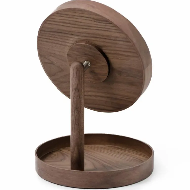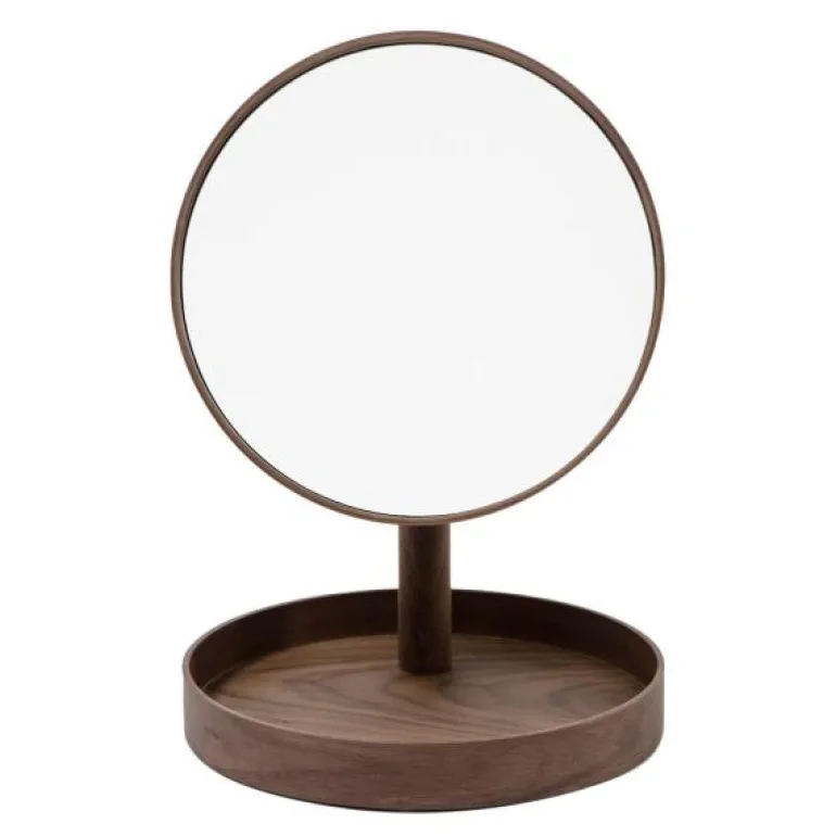 Sminkespeil med fot i valnøtt fra Wireworks. Look speilets runde, slanke speil i tre med leppekant ser moderne ut. Basen balanserer designen og fungerer som et praktisk oppbevaringsbrett som holder alle dine personlige gjenstander på ett sted, praktisk lett tilgjengelig. Den er ideell for sminkebord og bad eller bare som en dekorativ gjenstand.