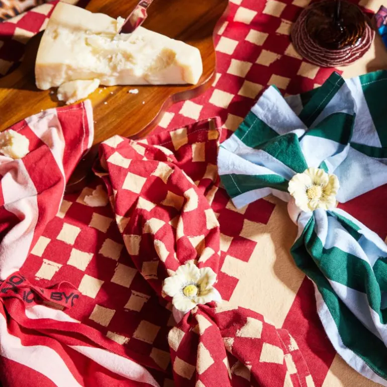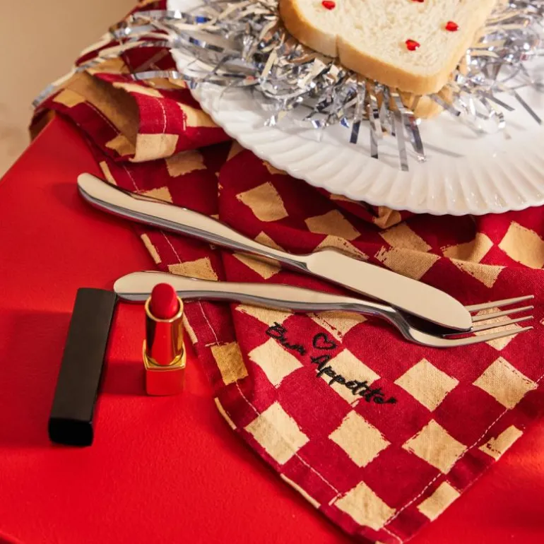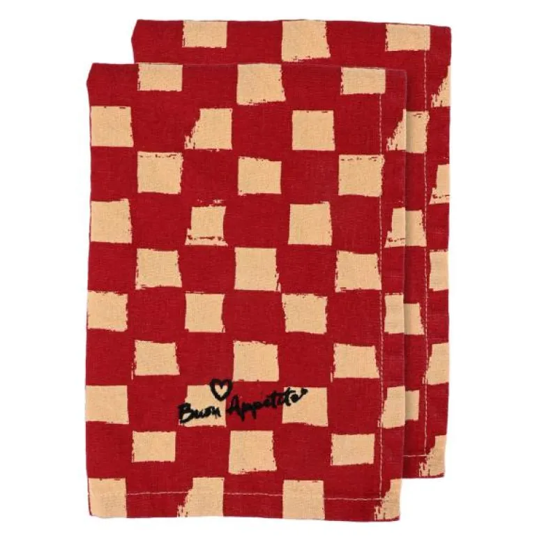 Ekspressive striper er et tilbakevendende tema for Byon. Love-servietten kombinerer et klassisk mønster med en dristig fargekombinasjon av kirsebærrød og smørgul. Napkin Love er brodert med et svart hjerte og teksten «Buon Appetito» som betyr «velsmakende måltid». En oppfordring fra oss om å skape litt ekstra varme og kjærlighet til alle borddekkinger. Matchet med Love eller Leya-familiene for maksimal Byon-følelse. Resultatet er en serviett som setter tonen for hele innstillingen. Laget av sertifisert økologisk bomull. Kommer i en 2-pakning. Mål 45×45 cm. Design Byon Studio. Kommer med vakkert Byon-bånd.
