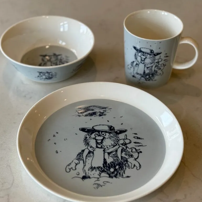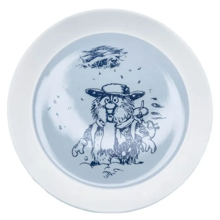 En nydelig blå asjett med motivet «Ludvig i snøføyka» fra Flåklypa fanger den poetiske roen fra Flåklypas vinterlandskap. Med en diameter på 20 cm passer den perfekt til frokost, småretter eller en søt avslutning på måltidet. Ludvig, det beskjedne pinnsvinet fra Kjell Aukrusts univers, står stille i snøføyka – tankefull og fylt med lengsel etter sommerens varme.