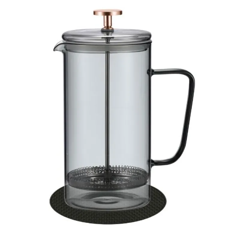 Produsert i borosilikatglass og 18/8 rusfritt stål, med en bordskåner i gummi