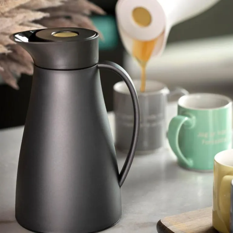 Denne termokannen er en perfekt kombinasjon av innovativt design og praktisk bruk, som vil bli et elegant tillegg til ethvert kjøkken eller spisebord.