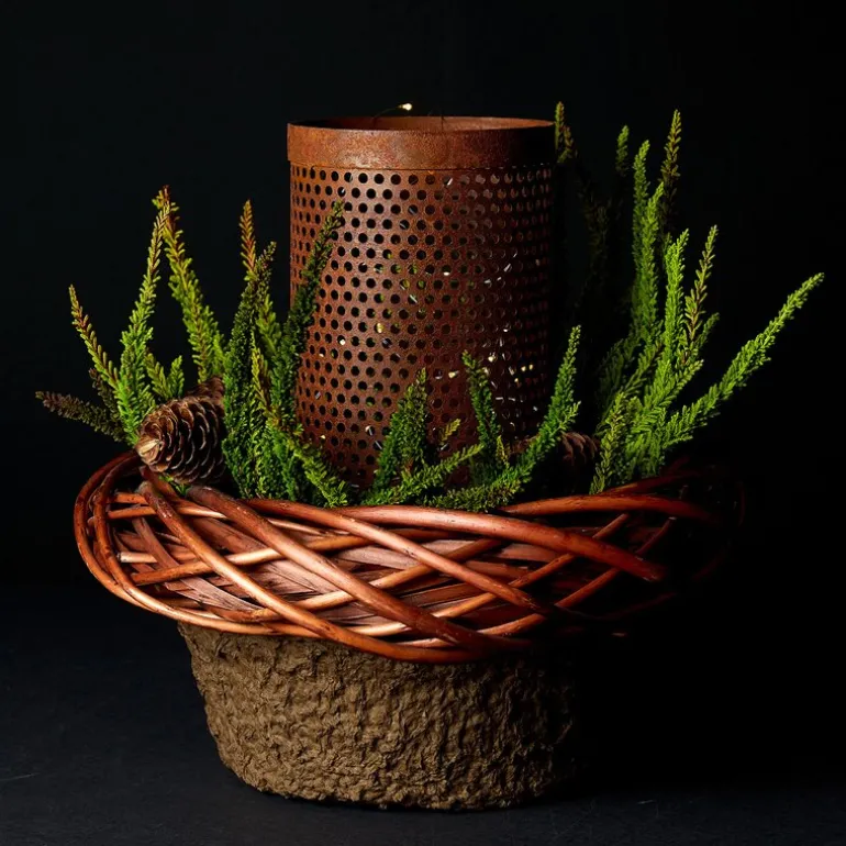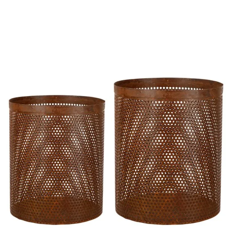 Denne lykten i rustet metall er designet for utendørs bruk og har en stilren sylinderform som gir et moderne preg. Den rustede overflaten gir lykten et røft og industrielt uttrykk, noe som tilfører karakter og sjarm til enhver uteplass. Perfekt for å skape en stemningsfull atmosfære i hagen, på terrassen eller balkongen, kombinerer denne lykten funksjonalitet med estetisk tiltrekningskraft. Med sin robuste konstruksjon og unike design er den et ideelt tilskudd for å lyse opp dine utendørs områder på en stilfull måte.