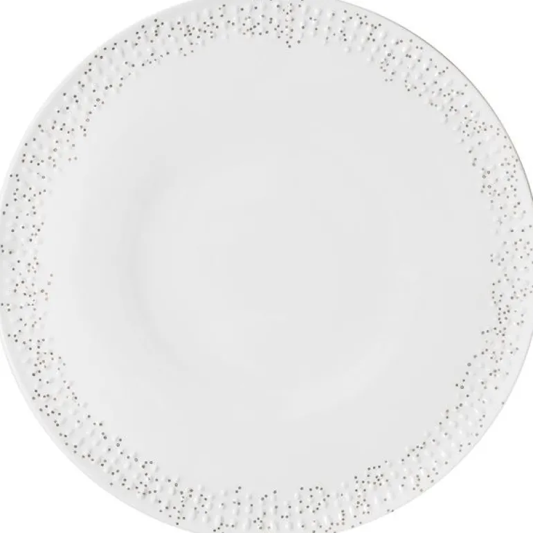 Lys tallerken på 27 cm fra Wik & Walsøe kombinerer eleganse og funksjonalitet med sin glansfulle og edle overflate. Denne tallerkenen, laget av høykvalitets benporselen, har en vakker gjennomskinnelighet som gir en eksklusiv følelse. Dekoren av små snøflak og en diskret kant i 24 karat gull tilfører et luksuriøst preg som løfter borddekkingen. Lys-kolleksjonen skaper en rolig og harmonisk atmosfære, perfekt for både hverdagsbruk og spesielle anledninger. Denne tallerkenen blir raskt en favoritt på bordet, uansett anledning.