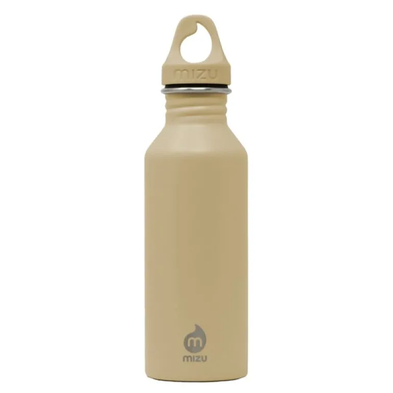 M5 drikkeflaske 0,5L sand. Mizu, som betyr vann på japansk, er en tidløs og funksjonell vannflaske laget i rustfritt stål. Flasken har en elegant design med en dråpeformet kork av resirkulert plast. Med en kapasitet på 500 ml er flasken lett å ta med seg og passer perfekt i de fleste flaskelommer og koppholdere.