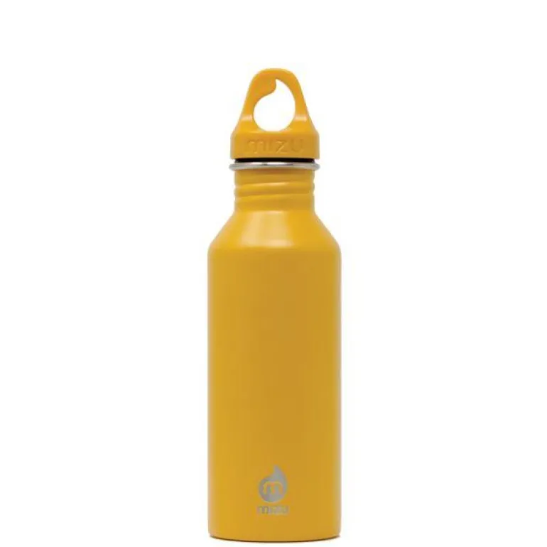 M5 drikkeflaske 50 cl gull. Mizu, som betyr vann på japansk, er en tidløs og funksjonell vannflaske laget i rustfritt stål. Flasken har en elegant design med en dråpeformet kork av resirkulert plast. Med en kapasitet på 500 ml er flasken lett å ta med seg og passer perfekt i de fleste flaskelommer og koppholdere.