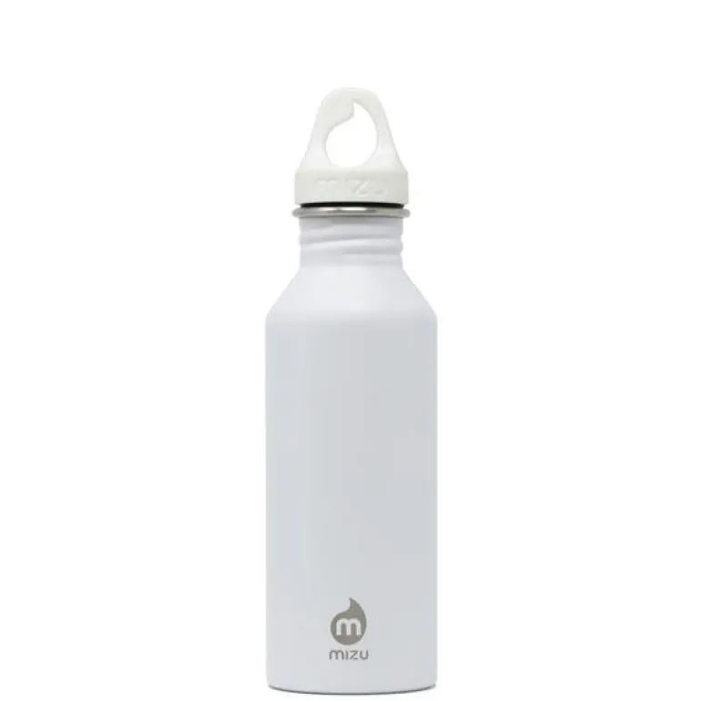 M5 drikkeflaske 50 cl hvit. Mizu, som betyr vann på japansk, er en tidløs og funksjonell vannflaske laget i rustfritt stål. Flasken har en elegant design med en dråpeformet kork av resirkulert plast. Med en kapasitet på 500 ml er flasken lett å ta med seg og passer perfekt i de fleste flaskelommer og koppholdere.