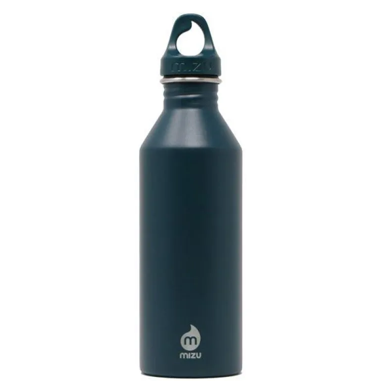 M8 drikkeflaske 75 cl blå. Mizu, som betyr vann på japansk, er en stilfull og praktisk vannflaske laget i rustfritt stål. Flasken har en elegant dråpeformet kork laget av resirkulert plast, som understreker både funksjonalitet og bærekraft.