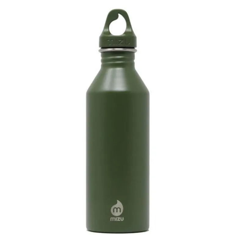 M8 drikkeflaske 75 cl grønn. Mizu, som betyr vann på japansk, er en stilfull og praktisk vannflaske laget i rustfritt stål. Flasken har en elegant dråpeformet kork laget av resirkulert plast, som understreker både funksjonalitet og bærekraft.