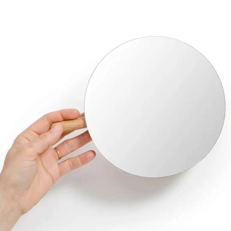 Sminkespeil, Magnifying i eik for veggmontering, fra Wireworks. Enten du bruker sminke, barberer eller skifter kontaktlinser, er dette veggmonterte speilet ideelt.