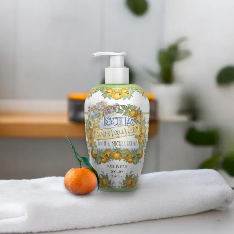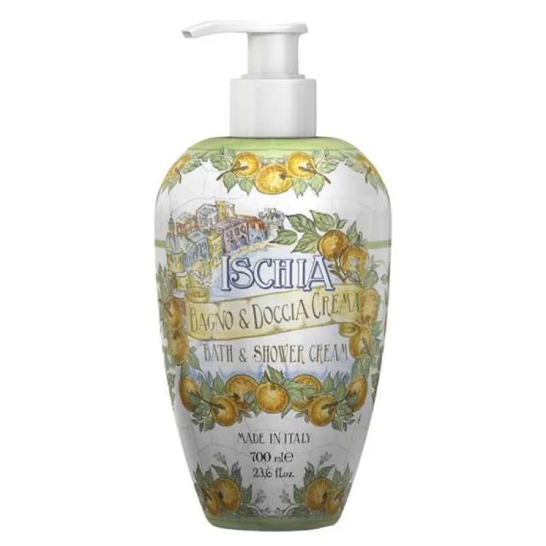 Bad & Dusj 700ml – Ischia er en herlig generøs og rikt skummende såpe som kan brukes som både badeskum og dusjgele. Beriket med Aloe Vera juice og Vit E for å gi ekstra fuktighet og næring til huden slik at den ikke tørker ut. Er med på å holde huden myk og frisk, og etterlater en helt nydelig frisk duft.