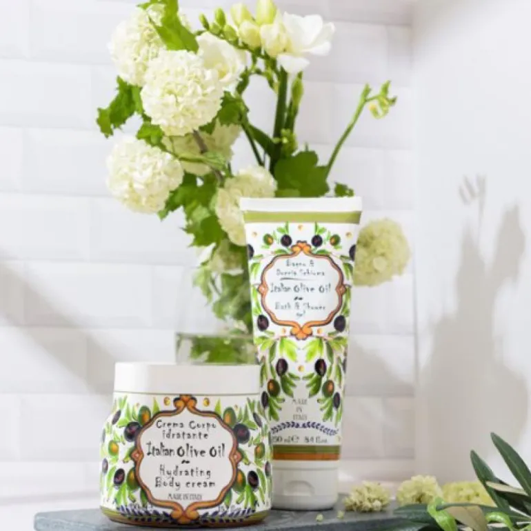 Dusj & Badegele 250ml – Italian Olive Oil er en herlig generøs og rikt skummende dusj og badeskum. Beriket med Aloe Vera juice og Vit E for å gi ekstra fuktighet og næring til huden slik at den ikke tørker ut. Er med på å holde huden myk og frisk, og etterlater en helt nydelig frisk duft.