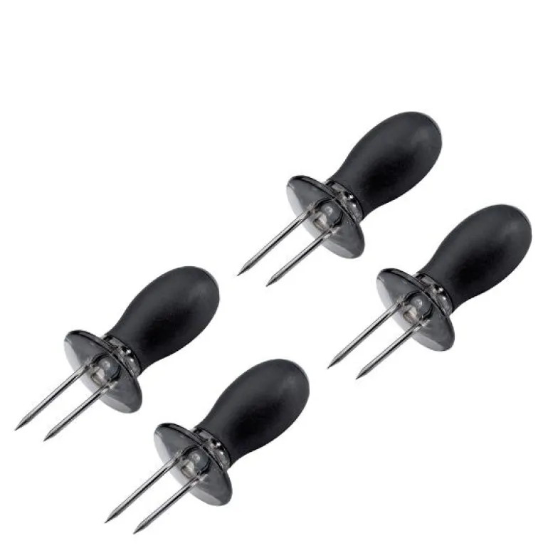 Sprø maiskolber fra grillen eller nykokt mais er alltid deilig til maten. Med maiskoblingsholderne har du kontroll på de gyllen-gule grønnsakene uten å brenne fingrene. Etter koking setter du holderne med de hendige doble spydene i hver ende av maiskolben. Settet kommer med 4 stk. og tåler oppvaskmaskin.