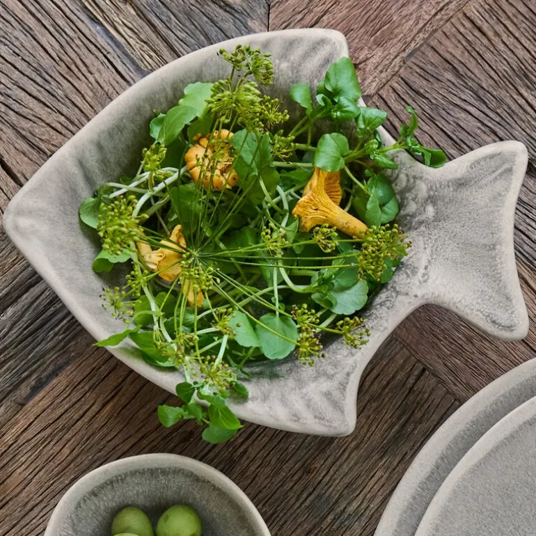 Maki serveringsfat 21,5×17,5 cm fra House Doctor er et sjarmerende innslag på spisebordet. Laget i keramikk og utformet i en fiskelignende form, har fatet en vakker matt grå finish som gir en elegant kontrast til fargerike råvarer og retter.