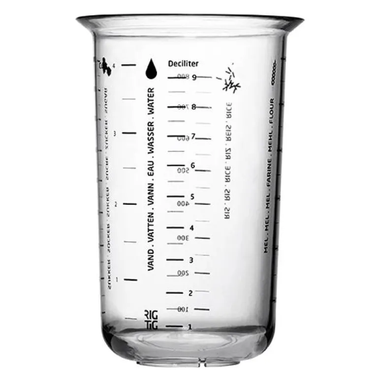 Kan også benyttes til å vispe i og passer derfor perfekt til stavmikser. Begeret er lett å helle av uten at det drypper eller søler fra alle kanter.