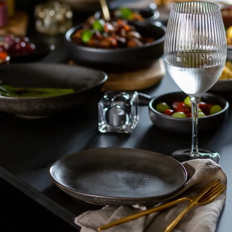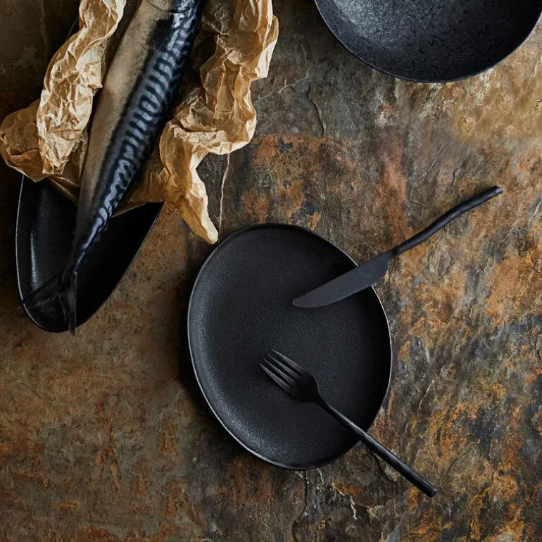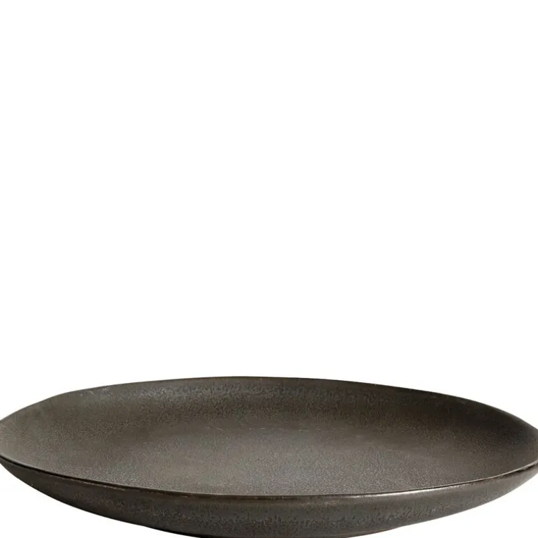Den grove, reaktive glasuren som pryder tallerkenen, minner om sanddyner ved havet og gir hver tallerken en helt spesiell karakter. Denne lekne variasjonen i farge og tekstur gir assietten en levende og naturlig estetikk. Skjæremerker kan oppstå ved bruk, noe som ytterligere forsterker tallerkenens autentiske utseende. Tenk på en sandstrand mens du kjenner den grove østersglasuren under fingertuppene.