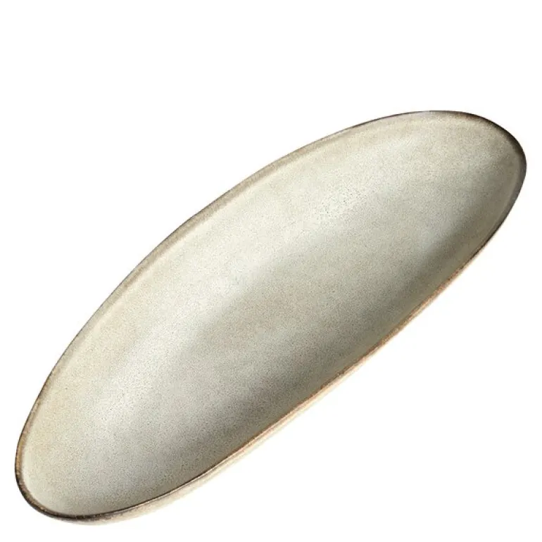 Mame-fatet på 13,5×36,5 cm i østerfarge fra Muubs er designet for å presentere hver rett med eleganse. Den langstrakte, ovale formen og den reaktive Oyster-glasuren gjør at tapas, sushi, sjokolade eller småkaker blir vakkert fremhevet, med en unik karakter på hvert fat.