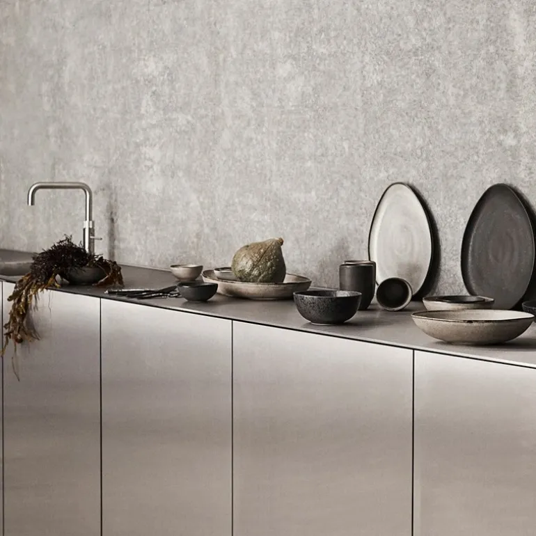 Muubs Mame-tallerkenen på 24 cm er en raffinert del av Mame-serien, inspirert av den organiske formen til en bønne. Den ovale formen tilfører en subtil, naturlig eleganse til ethvert måltid, samtidig som den reaktive glasuren gir hver tallerken en helt unik karakter. Denne tallerkenen er en hyllest til den skandinaviske designestetikken, kombinert med den japanske Wabi-Sabi-filosofien som verdsetter skjønnheten i det ufullkomne. Steintøyet er behandlet med en reaktiv glasur som gir en leken variasjon i farger og tekstur, noe som gir en taktil opplevelse når du kjenner den grove østersglasuren mot fingertuppene. Tallerkenen er både vakker og praktisk, egnet for bruk i mikrobølgeovn, ovn og oppvaskmaskin. Vær oppmerksom på at skjæremerker kan oppstå ved bruk, noe som bare understreker tallerkenens naturlige sjarm. Muubs fortsetter å lede an innen interiørdesign med sin innovative tilnærming, alltid på jakt etter å skape unike og funksjonelle designløsninger som tilfører hjemmet ditt sjel og karakter.