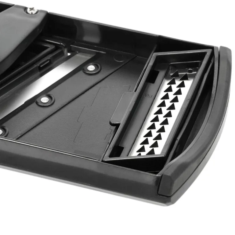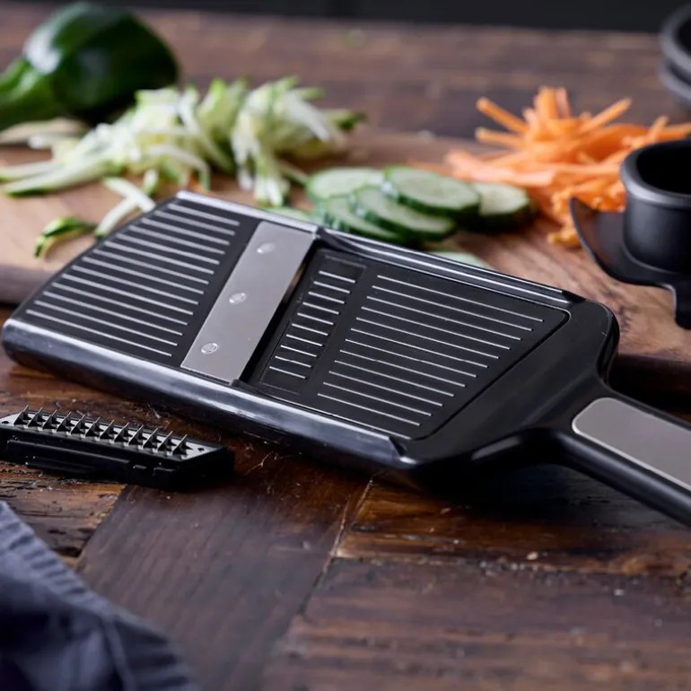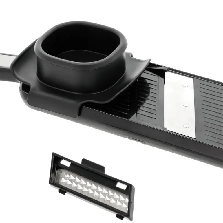 Fingrene beskyttes av den medfølgende holderen, og verktøyet gir jevne resultater ved kutting. Mandolinjernet er lett å rengjøre og enkelt å oppbevare etter bruk.