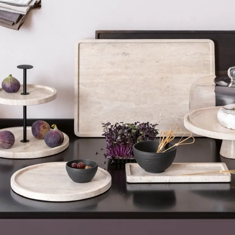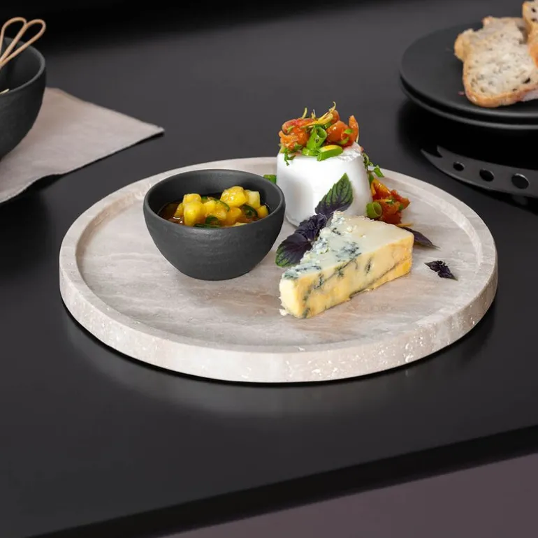 Hver del er håndlaget og fremhever den naturlige travertinstrukturen som gjør hvert fat unikt. Et luksuriøst valg som løfter både servering og interiør – perfekt for deg som verdsetter design og kvalitet.