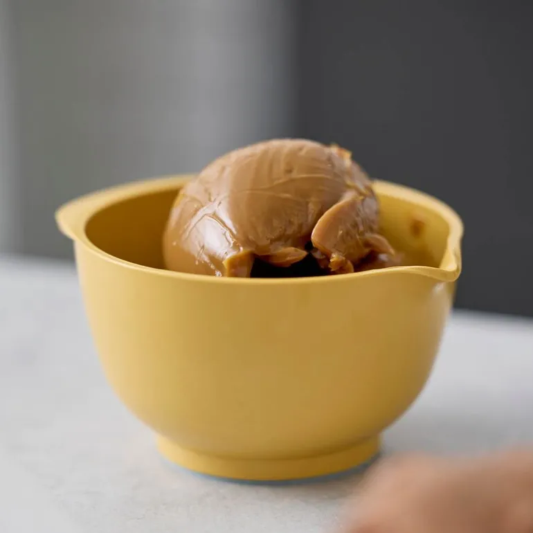 Margrethe bakebolle 0,25L i curry fra Rosti er en tidløs klassiker som kombinerer funksjonalitet og estetikk. Det ikoniske designet, med en praktisk helletut, gjør den enkel å bruke både til matlaging og servering. En sklisikker bunnring sikrer stabilitet under bruk, og Durostima®-plastmaterialet gir bollen ekstra slitestyrke og gjør den knusesikker.