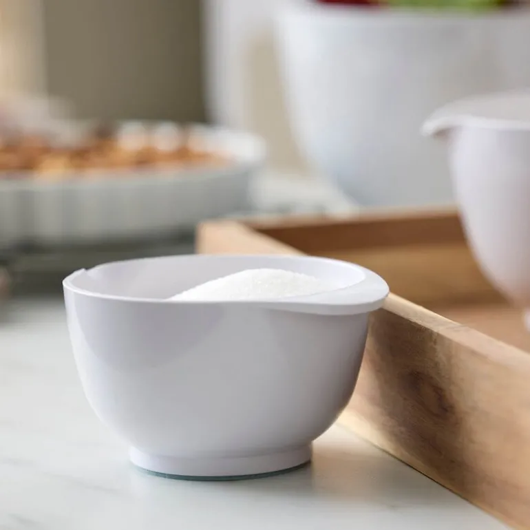 Margrethe bakebolle 0,25L i hvit fra Rosti er en tidløs klassiker som kombinerer funksjonalitet og estetikk. Det ikoniske designet, med en praktisk helletut, gjør den enkel å bruke både til matlaging og servering. En sklisikker bunnring sikrer stabilitet under bruk, og Durostima®-plastmaterialet gir bollen ekstra slitestyrke og gjør den knusesikker.