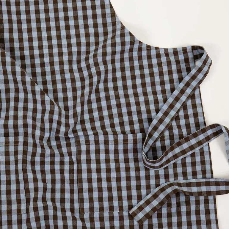 Maria forkle 70×82 cm i lys blå/brun fra A world of craft er laget i kraftig håndvevd bomull og har to lommer foran samt justerbart nakkebånd. Et funksjonelt og tidløst plagg for både hverdag og selskapsservering.