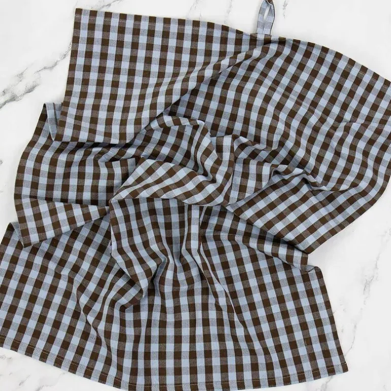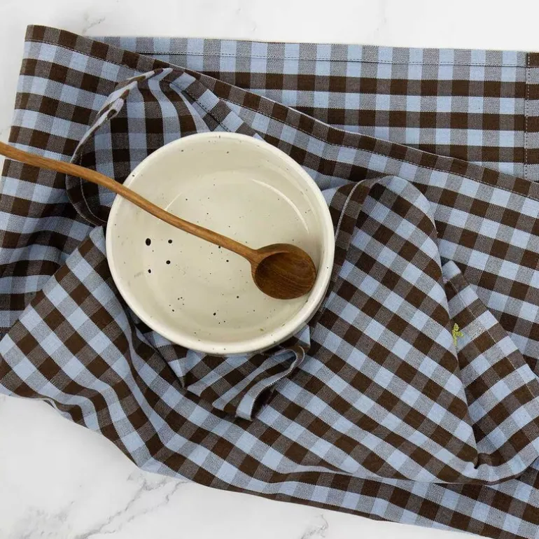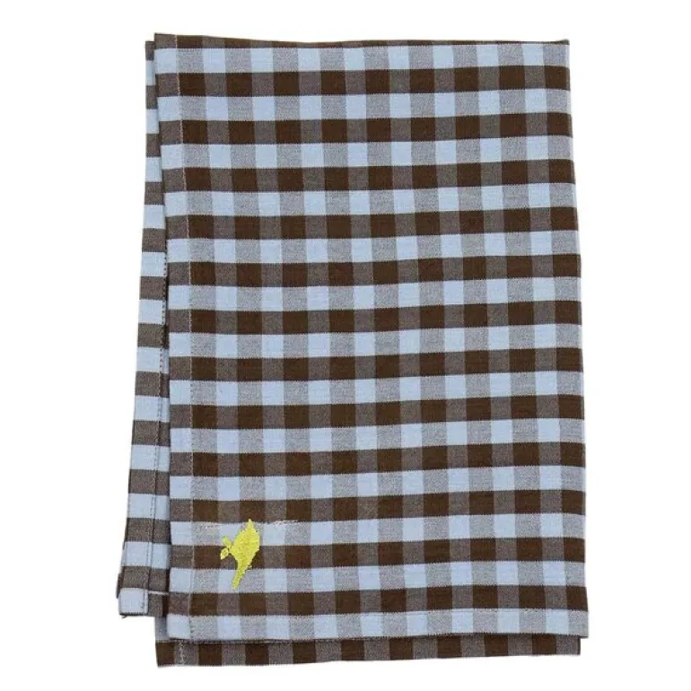 Maria kjøkkenhåndkle fra A World of Craft er laget i 100 % økologisk bomull og vevd for hånd i en tett og slitesterk kvalitet. Det klassiske rutemønsteret i lys blått og brunt gir et tidløst uttrykk. Håndkleet produseres av en WFTO-sertifisert organisasjon og er signert med en liten, håndbrodert gul fugl.