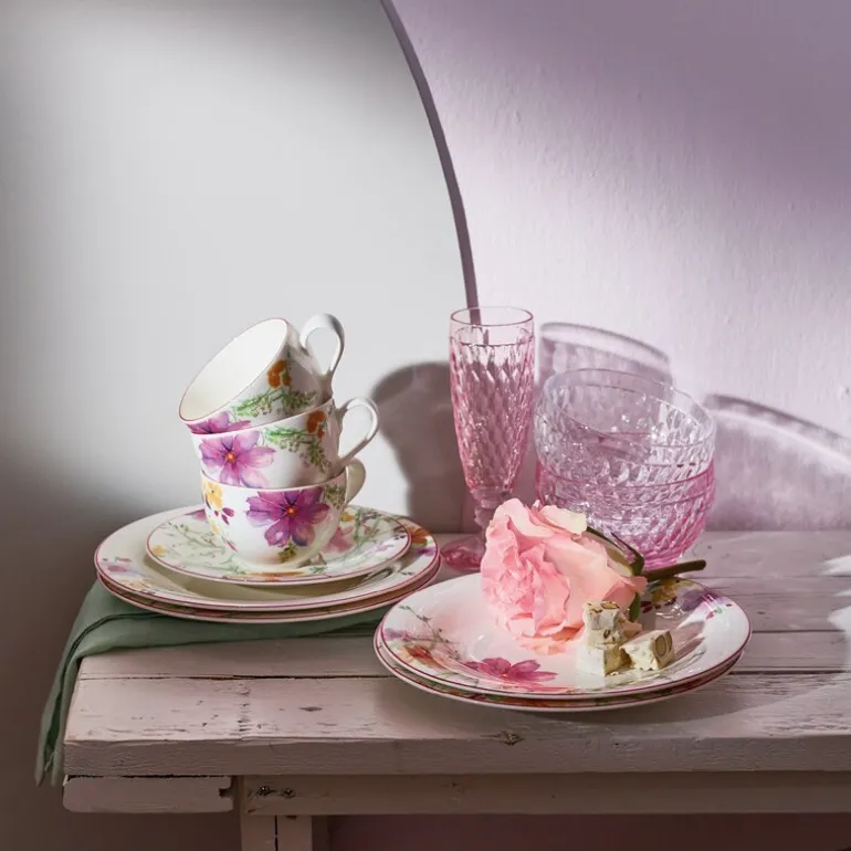 Skålen fra Mariefleur Basic-serien er et harmonisk tillegg til frokostkoppen. Med en diameter på 19 cm og sitt delikate mønster i friske farger, forvandler den bordet ditt til en blomstrende eng.