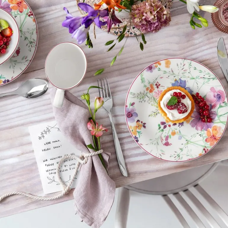 Med sin diameter på 21 cm og sitt delikate blomsterdesign, er Mariefleur Basic tallerken med full dekor en perfekt detalj til ethvert måltid. Denne frokosttallerkenen er ideell for alt fra morgenens brødskive til ettermiddagens kake eller kveldens småretter.