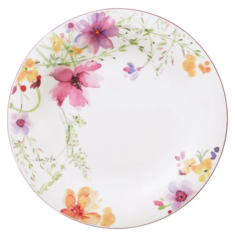 Med sin diameter på 27 cm og sitt friske blomsterdesign, er Mariefleur Basic tallerken en vakker og funksjonell detalj til bordet ditt. Denne tallerkenen passer like godt til en avslappet lunsj som til et festlig middagsbord, og gir borddekkingen et elegant og fargerikt preg.