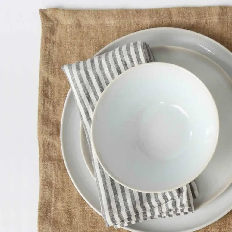 Dekkeunderlag i håndvevd lin med dekorativ kantsøm. Å dekke bordet med bordbrikker rammer enkelt inn rammen og gir en varm velkomstfølelse rundt spisebordet. Nydelig å bruke alene ved bordet, eller med en duk som finnes i samme dempede fargeskala. Stryk den forsiktig for et jevnere uttrykk eller la den tørketrommel på lav varme for å opprettholde den vakre teksturen.