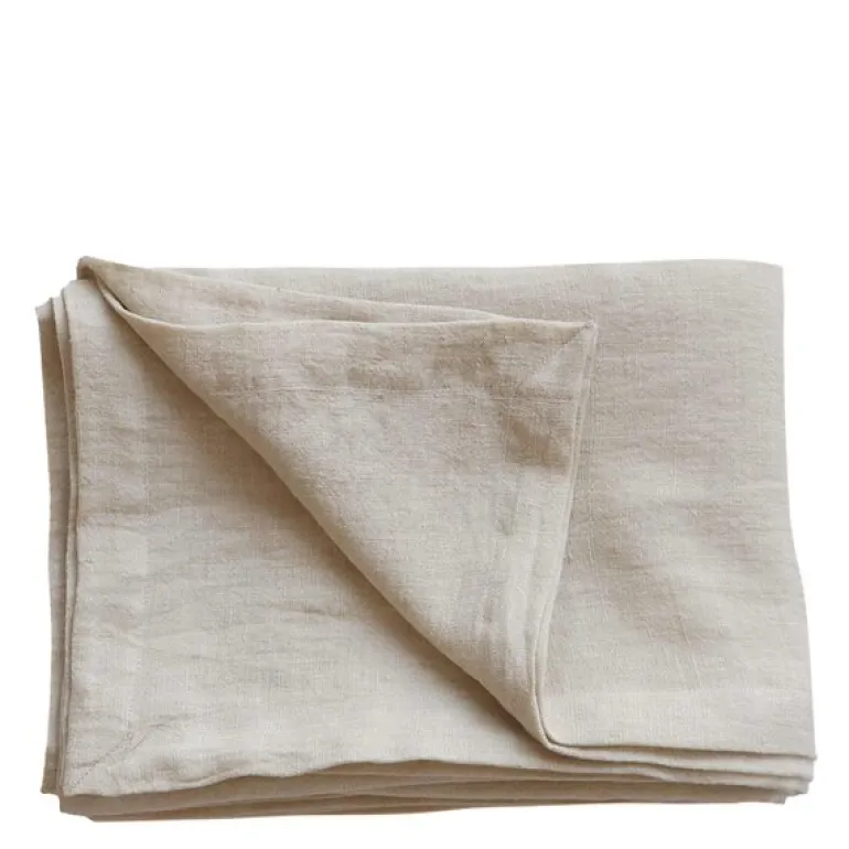 Marion duk fra Tell Me More er håndvevd i 100 % lin og måler 175×175 cm. Den kvadratiske formen og den litt bredere kanten gir et balansert uttrykk, mens fargen wheat tilfører borddekkingen en lys og lun tone som fungerer året rundt.