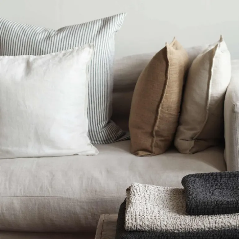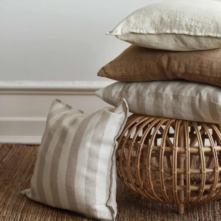 Marion putetrekk 50×50 cm i fargen pampas fra Tell Me More er laget av håndvevd lin, som gir det en grov og naturlig tekstur med subtile forskyvninger i stoffet. De dekorative kantsømmene tilfører en ekstra detalj som gjør putetrekket elegant. Hvert putetrekk er håndlaget, noe som betyr at det kan være små variasjoner i tekstur, farge og form fra de viste bildene.