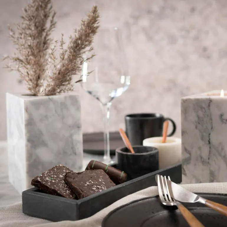 Vær obs på å plassere stoffer som kan farge av, som syre, stekefett, kaffe og bærsaft, da marmor er en porøs stensort.
