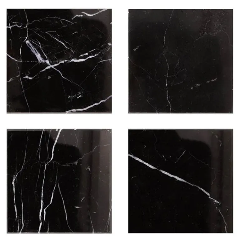 Med Marmor kvadratisk glassbrikke 10 cm i svart fra Stiernholm får du et sett på fire eksklusive brikker, hver med sitt unike mønster fra naturlig marmor. Disse brikkene er en sofistikert detalj til borddekkingen, uansett om det er til hverdagsbruk eller fest.