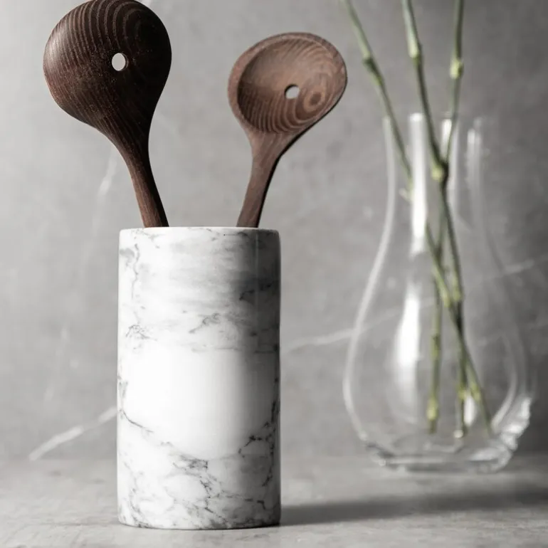 Med Marmor redskapsholder 17 cm i hvit fra Stiernholm får du en praktisk og estetisk løsning for oppbevaring av kjøkkenredskaper. Hver holder er laget av høykvalitets marmor, og de naturlige årene i steinen gir en unik karakter til hvert eksemplar. Den robuste basen gir stabilitet og gjør den ideell for daglig bruk, samtidig som den utgjør en dekorativ detalj på benken.