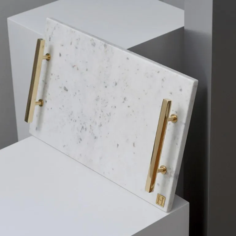 Marmorbrettet fra Hilke Collections er en elegant og funksjonell serveringsbrett. Det er laget av naturlig marmor og har håndtak i trendy messing. Denne kombinasjonen av materialer gir brettet et unikt og stilfullt utseende. Brettet er en perfekt presentasjonsflate for mat og drikke, eller som en base for stearinlys. Med sin praktiske størrelse passer det godt til å servere småretter, snacks eller drikke.