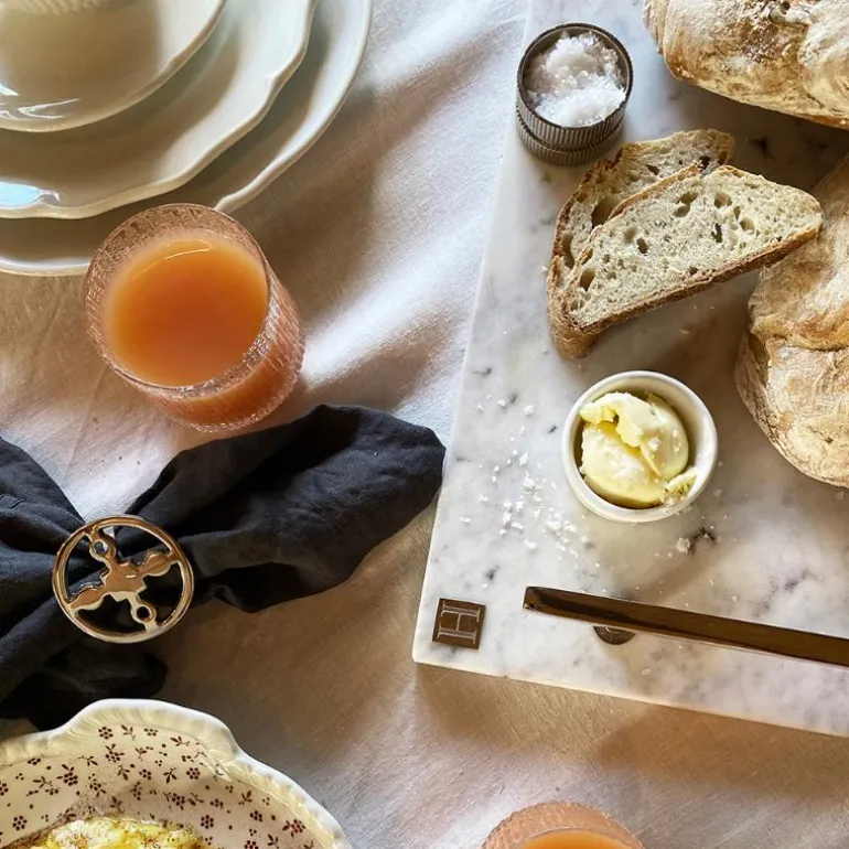 Marmor er kjent for sin holdbarhet og eleganse, og dette serveringsbrettet er ingen unntak. Den naturlige variasjonen i marmoren gir hvert enkelt brett en unik karakter og et autentisk utseende. Marmorbrettet er designet av Giovanna Hilke. Det er laget av høykvalitetsmateriale og er produsert i India.