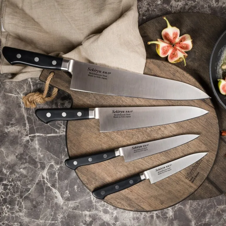 Sekiryu Master serien har knivblad av 8A høykvalitets- japansk molybden stål. 8A japansk stål har en solid hardhet og skarphet og har vanskelig for å ruste. Sekiryu Master serien har et enkelt design og for forbrukeren som foretrekker den enkle og sofistikerte kniven er dette god match på grunn av kvaliteten på kniven og bladet. Denne serien er perfekt for både hobbykokken og for den profesjonelle. Sveiset klinge hindrer vann å komme inn i håndtaket.
