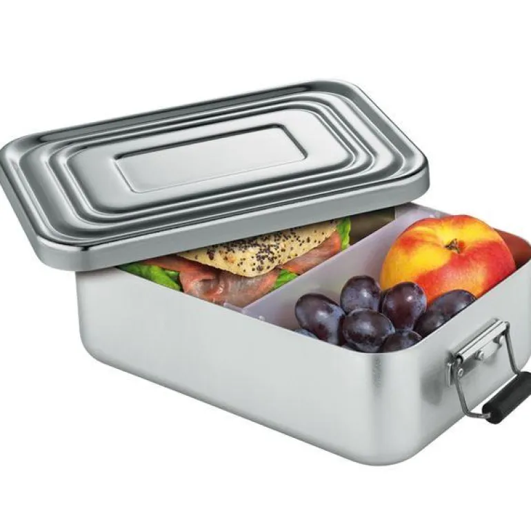 Med matboksen fra Küchenprofi kan du alltid ta maten din med deg. Lokket holdes stramt, så det ikke slipper noe ut. Matboksen er laget av aluminium, som hjelper til å holde på matens temperatur. Du kan evt. fryse matboksen ned dagen før, for å holde maten ekstra kald. Innvendig er det et skille, så maten ikke blir blandet sammen.