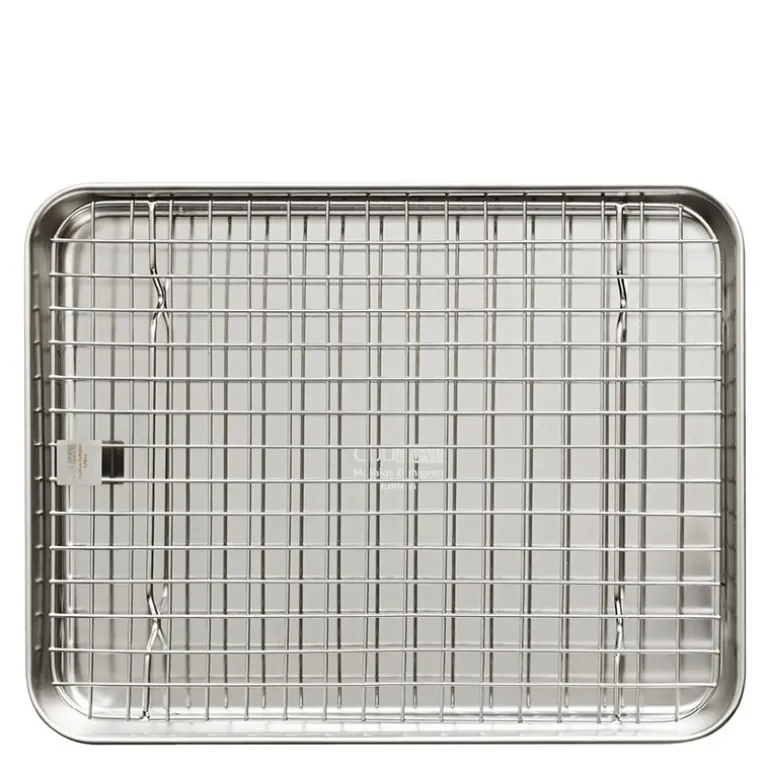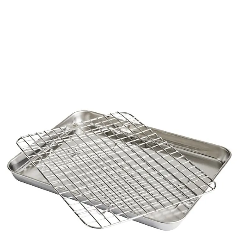 Blekket er ovnssikkert og tåler oppvaskmaskin, noe som gjør det enkelt å rengjøre etter bruk. Med sine mål på 31,5 x 24,5 x 2,4 cm er det perfekt for en rekke tilberedningsoppgaver. Risten er finmasket, noe som gjør den spesielt egnet til både store og små råvarer, som for eksempel asparges eller små reker. Dette sikrer jevn varmefordeling og gir optimale resultater både ved steking og avkjøling.