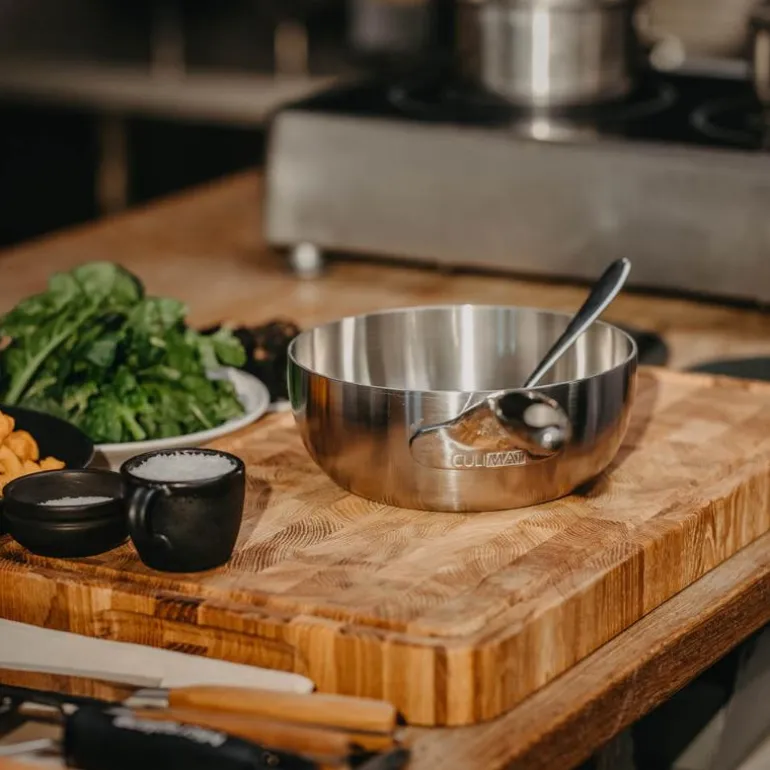 Sauteusen leder varmen vekk fra bunnen og passer godt til følsom mat, som saus, grøt, risotto og lignende. Elegant design som er utviklet i nært samarbeid med stjernekokken Mathias Dahlgren. Sauteusen har jevn varmefordeling som forhindrer at maten brenner seg fast. Håndtaket er komfortabelt og har riktig vinkel. Det er punktsveist av hygieniske årsaker – det er ingen nitter på innsiden der smuss og bakterier ellers kan samle seg.