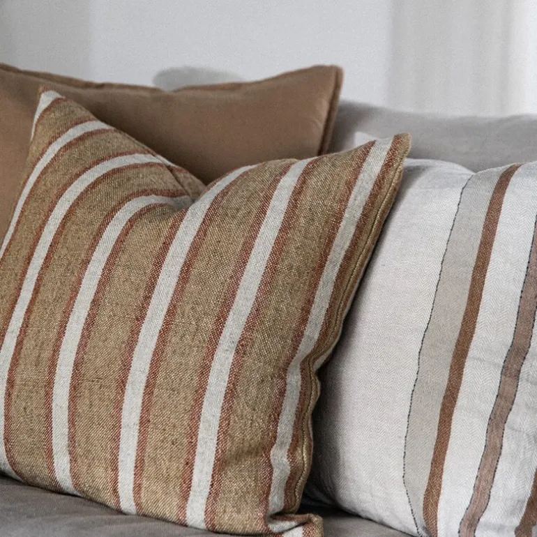 Maurice putetrekk 50×50 cm i pampas stripe fra Tell Me More er laget av grovt lin og har et tidløst design med striper i brune, beige og hvite toner. Putetrekket har en vakker og variert tekstur som gjør det til et ideelt valg for både sofa og seng, og kan enkelt mikses med andre pynteputer. De livlige fargene skaper naturlige variasjoner i stoffet, noe som gir hvert putetrekk et unikt preg.