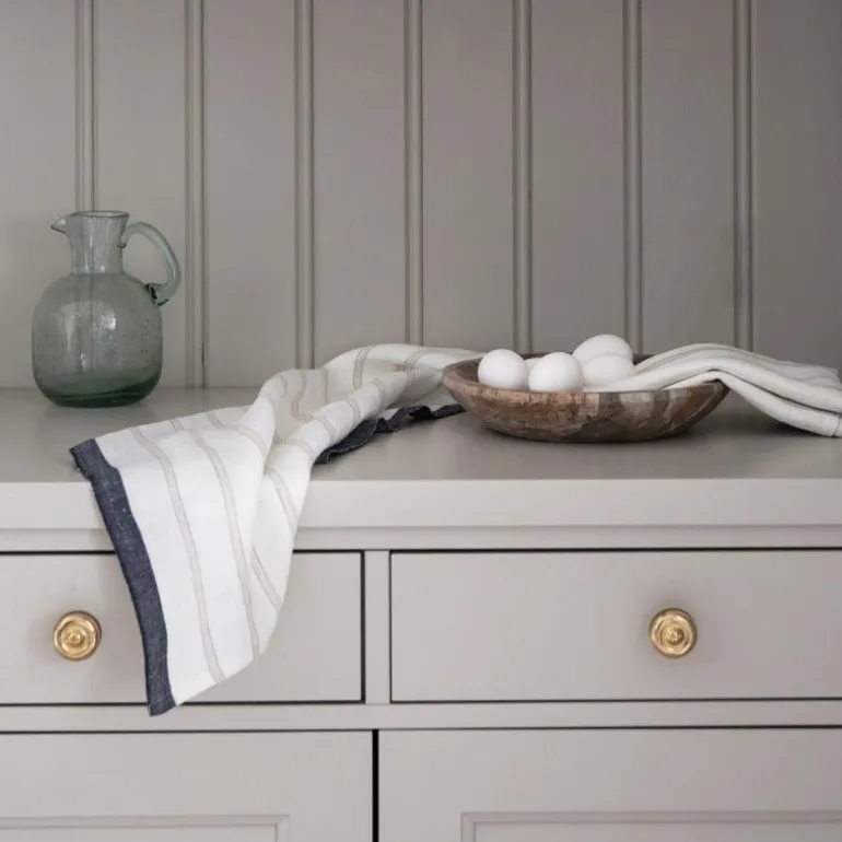 Maya kjøkkenhåndkle 50×70 cm naturlig stripe fra Tell Me More. Vakkert stripet kjøkkenhåndkle i 90% lin og 10% bomull. Håndkleet har et sobert design med striper og finnes i to dempede farger.