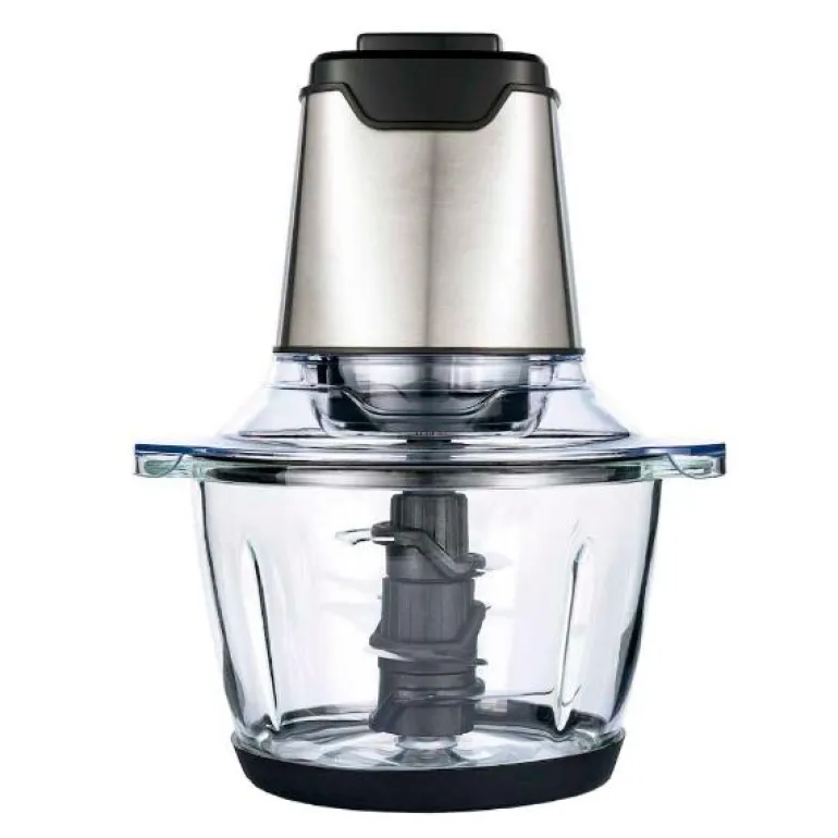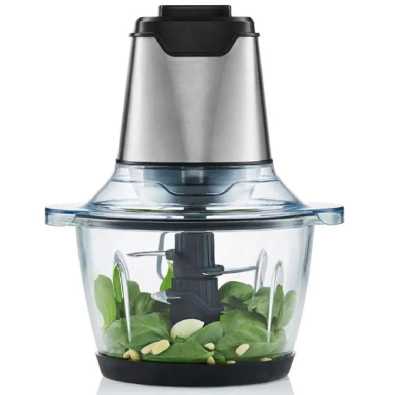 MC3B400S elektrisk minihakker fra Wilfa. Enkel hakking av løk, nøtter, grønnsaker, frukt, kjøtt, ost, urter, 3 avtagbare kniver for optimal hakking, enkel rengjøring, bolle, lokk og kniver kan rengjøres i oppvaskmaskin, glassbolle på 1,2L