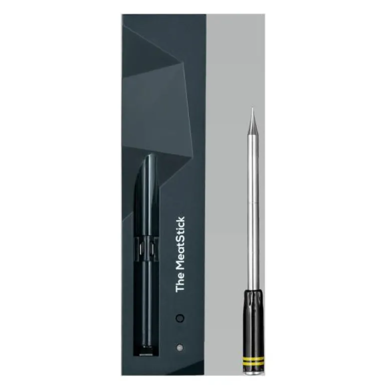 MeatStick Classic trådløst steketermometer. MeatStick representerer den neste generasjonen av app-baserte, trådløse steketermometre. De nye modellene, MeatStick 4X og Chef X, er verdens første med hele fire sensorer, fullpakket med teknologi som sikrer perfekte resultater hver gang. Enten du griller, steker, sous vide, friterer eller bruker air fryer, tar The MeatStick gjetningen ut av matlagingen! Dette overlegne trådløse termometeret på markedet gir deg den nyeste teknologiske innovasjonen med lengre rekkevidde, bedre batterikapasitet og høyere temperaturtoleranse.