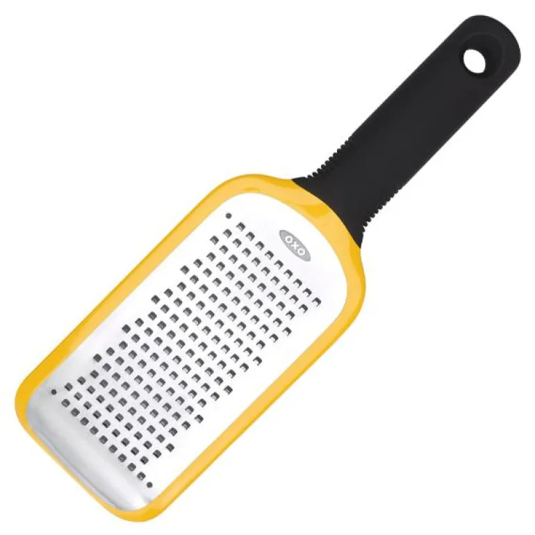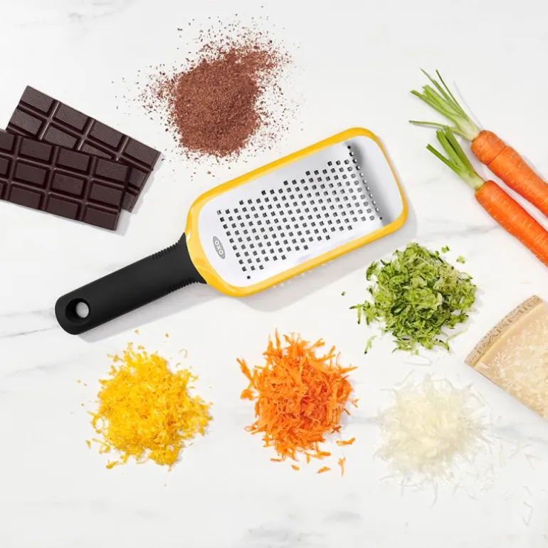 Medium rivjern med etset og meget skarp riveflate i rustfritt stål. Rivjernet er ideelt til å rive harde og fiberrike grønnsaker som gulrøtter, squash, ingefær og kokosnøtt, samt sjokolade m.m. Rivjernet har et bakoverbøyd non-slip håndtak som maksimerer riveflaten. Det har en non-slip bunn som gjør at det står godt fast på underlaget og det medfølger et cover til sikker oppbevaring. Tåler oppvaskmaskin.