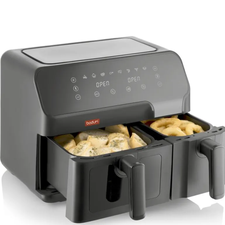 Oppdag en verden av kulinariske muligheter (utstyrt med 8 forhåndsdefinerte tilberedningsalternativer) med intuitive og enkle kontroller. Den digitale berøringsskjermen lar deg enkelt justere tid og temperaturinnstillinger, slik at du har friheten til å eksperimentere med et bredt spekter av oppskrifter. Pluss, den har to skuffer for delikate smaker, som du kan nyte (nesten!) uten skyldfølelse.